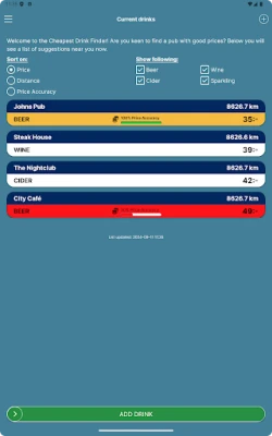 Whether you're searching for a new watering hole or just want to keep track of the best prices, our app is your perfect companion for a great night out!